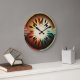 En skarp och färgstark modern väggklocka med ett inbyggt amerikanskt inspirerat tema med en traditionell sydvästra palett med abstrakt i contemporary som formar färg för en modern snyggt touch