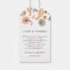 Lägg till lite säsong elegans till din speciella dag med Eleganten Bröllop Gift Märkre. Den här märkrn har handmålade vattenfärgspumpor, gurder och höst löv i varma örntoner och är perfekt för att binda sig vid bröllopsfavörer, presentsäckar eller vin flaskor. Den roliga men raffinerade utformningen kompletterar sig på bröllop, på skörd av firande och på Thanksgivingar. Den här märkrn kan vara personlig med ditt namn och ditt datum och skapa en varaktig kipsaké för dina gäster. Den är utskriven på premiumets namnteckning pappert med ett val av färg. Slutför utseendet med matchande inbjudningar, OSA kort och vin flaska-etiketter från samma samling.