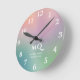 Modern färgad pastel och vit monogram Initialer Rund Klocka