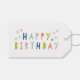 Ett roligt sätt att lägga till personlighet till dina presenter. En ljus, modern födelsedagspresenttagg och färgblock på baksidan med utrymme att skriva på.