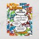 En roligt, coola och trendig retro tecknad bok popkonstinspirerad bröllopsinbjudan som sätter in visken, skaka, pow i alla superhjältepars firande-evenemang. Den omvända har en matchande tecknad bok mönster som du kan ersätta med en egen bild eller ett eget foto. Designad av Thisisnotme©