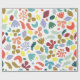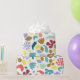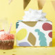 Roligtens moderna födelsedagskalas pappert. Modern och färglös med ett slumpmässigt utspridt mönster av organiska former i Flat Design stil. Crescent, blobs, blad, fotavtryck och fläckar i trendig färg av rött, grönt, blått, orange, gult och guld. Modern färglagd figursättning Papper