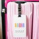 Vackert, modernt men enkelt bagagemärke med fem vattenfärgade plagg i olika färg med ord sommartid i skript, och i modern roligt står det att familjen namn, all text om det är lätt att göra det och göra det till din egen
