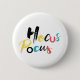 Modern, lekfull, färglös grafisk design av ett ordspråk "Hocus Pocus" i rött, gult, blått och svart färg. Kreativ, experimentell, glad typografi.