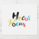 Modern, lekfull, färglös grafisk design av ett ordspråk "Hocus Pocus" i rött, gult, blått och svart färg. Kreativ, experimentell, glad typografi.