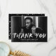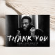 Snyggt, tack för det moderna studenten-kortet som innehåller vågrät student med "Tack" med vita bokstäver med vita färgstänk. Anpassa kreativets framsida genom att lägga till student, namn, namn och studenten. Baksidan av fototacket i studenten har du plats för ett skrivet eller handskrivet tack och ett svartvitt stänk mot stänk.
