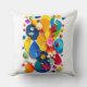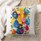 Förnya direkt ditt vardagsrum eller sovrum med denna iögonfallande prydnadskudde. Den krämiga vita bakgrunden framhäver vackert det livfulla arrangemanget av abstrakta popkonstformer och taktila blomsterdetaljer. En perfekt modern accent för att lysa upp din soffa eller favoritfåtölj.
