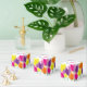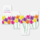 Detta är en flickaktig, färgrik, modern och söt mönsterdesign med varmröda, lila, gula och orangea blommor. Text med scripttypsnitt.