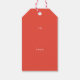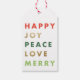 En modern julklappsetikett med fet, tydlig typografi i olika alternerande färger och guldfolie.