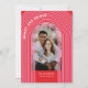 Modern färgstark geometrisk ljusröd och rosa abstrakt helgdag-fotokort. Förbluffande, på trendgrafik med olika former av trender för funkyns designerbilder. En del av en samling.