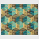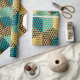 Modern färgstark geometrisk oktonpatter i grönt, guld och svart.