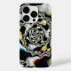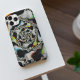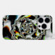 Iphone case har en abstrakt, psykedelisk spiral fraktalkonst i svartvitt med gult, orange, blått och grönt.