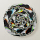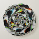 Den här runda kudden har en abstrakt, en psykedelisk spiral fraktalkonst i svartvitt med gult, orange, blått och grönt.