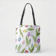 Produktdesignen har en mönster av färgstarka tulpanblommor i lila, rött, rosa, blått och gult. Den här botaniska illustrationen gör en elegant modern och unik i väskan - Gift-idé för födelsedag, Påsk, Mor-dagen, bröllop med mera!