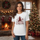 Den här söta, moderna t-shirt-skjortan har en röd och svart buffel som pläderar för evigrön träd, snöflingor och "God jul" hälsning.