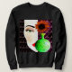 This modern fashion‑forward sweatshirt blends illustration and still‑life artistry into one striking statement piece. One side features a cropped, stylized fashion face—bold, minimal, and expressive—while the opposite side showcases a sleek green vase holding a single sunflower, rendered in a contemporary art‑illustration style. The contrast between human form and botanical still life creates a fresh, editorial look perfect for trend‑setters who love wearable art. Soft, stylish, and visually captivating, this sweatshirt brings gallery‑level creativity into everyday fashion.