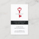 Denna släta moderna fastighetsmäklarevisitkort inkluderar en personlig tagline eller slogan och en röd skelettnyckel med en hjärta i mittet.