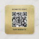 Modern och minimal utformning av kvadratiska affärskort ger din logotyp och anpassningsbar QR-kod på baksidan. Anpassa den svarta formuleringen med önskad affärsinformation, t.ex. namn, adress, mobilt nummer eller webbplats. Innehåller en faux guld-bakgrund. Öka guld utseende med en halvglans eller pärlpapper avsluta.