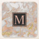 Modern Faux Ro Guld Marble Swirl Monogram Underlägg Papper Kvadrat