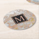 Modern Faux Ro Guld Marble Swirl Monogram Underlägg Papper Rund