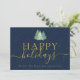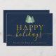 Modern Festive Träd Logotyp Navy Blue Guld Busines Julkort