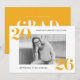 Gästerna i inbjudan till studentfesten med de här 2025-studentfestens feta inbjudningar, med en elegant design med vågräts foto inramat i vitt och siffran "25" i fet gult, modern text längst upp till lämnat och grund-högernas hörn. Anpassa fronten med student namn och skolan för en unik beröring. Baksidan av inbjudan visningar studentfestens detaljer i vit text mot bakgrund av en solid gult, vilket skapar ett dynamiskt utseende och contemporary. Perfekt för både högskoleutbildade och högskoleutbildade student, dessa studentkort i anpassningsbar anger tonen för ett minnesvärt firande.