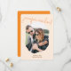 Ställ in ett påstående med dessa fet, färgstarka inbjudningar till bröllop spara datum som innehåller ditt foto i ett asymmetriskt ram, parets namn i ett skript med handskrivet känsel och allt inlindat i en fet orange färg palett. Anpassa den här bröllop spara datum-mallen med valfritt meddelande på baksidan om du vill!