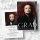 Modern och djärv 2-fotokort för studenten, med inslag av vit, transparent och modern text för mode stil med texten "GRAD", med minimal typografi. Bilden från student på kortets framsida visar hela yta med ett andra foto på baksidan. På baksidan av kortet finns även textutrymmen för personlig som ger information om studenten och framtida resor. Perfekt för högstadiet, högskolan och universiteten grad student.