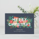 Skicka vackra, personliga julhälsningar med detta stilrena kort med olika handritade blomelement (tall, blommor, knoppar, kottar, blad och kvistar). Modern typografi lyder "God Jul" i vitt, och loofverken är placerade under, med vissa element ovanför texten. Textmallar på både framsidan och baksidan är lätta att anpassa. Bakgrundsfärgen (visas i skiffergrått blått) kan anpassas till en annan färg om så önskas. *All konst skapad exklusivt av Orabella Prints - alla rättigheter förbehållna.