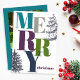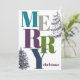 God jul-fotokortet har en fetstilt typografisk utformning med ord-temat "Merry" i blått, lila, grått och grönt färg. Två illustrationer i Julgran kan ses på vardera sidan om ord "merry" Denna minimala, enkla och moderna design är redot för dig att anpassa dig med ditt eget foto och meddelande. Ändra färg eller behålla som visas här. Bläddra i julkortssamlingen om du vill ha mer design.