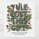 Denna festive vin-etikett innehåller frasen "Yule Kärlek this Gift", som är försedd med en sansad helgdag av skal och bär. Med anpassade hälsning-text som är perfekt för att lägga till en personlig vid ett flaska i vin, ger denna märkning en tankfull och snyggt gåva under julhelgen. Etikettens varma och inbjudande utseende fångar andan av ge, skapar vin flaska en närvaro vid vilken firande som helst.