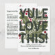 Denna "Yule Love This!" hälsnings- och receptkort har en djärv och festlig modern design med en lekfull twist. Perfekt för att dela dina favoritjulrecept, kan detta kort anpassas för att inkludera ett älskat recept på baksidan, vilket gör det till ett genomtänkt och unikt sätt att sprida säsongens glädje från din familj till andra. Detta kort är en del av en samling, så vänligen ta en titt på de andra roliga artiklarna som är utformade för att komplettera denna design.