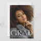 Moderna och djärva "Photo" studenten-annonskort med inslag av vit, transparent och modern text från mode stil med texten "GRAD", med minimal typografi. Bilden från student på kortets framsida visar hela yta. Kortets baksida ger personlig textutrymmen för information om studenten och framtida resor. Perfekt för högstadiet, högskolan och universiteten grad student.