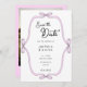Ange tonen för det kommande bröllop med det här visuella Spara datumkortet med ett handritat rosa-band med ram och elegant-typografi. De mjuka, lekande bågarna tillför lite charm och romantik samtidigt som de håller designen färsk och modern. Fullständigt anpassade med namn, datum- och lokaliseringsinformation är den här inbjudan perfekt för par som vill ha något sött men ändå snyggt. Perfekt för vår bröllop, trädgårdsceremonier eller firande med ett känsligt och romantiskt tema. Lägg till ditt personliga foto på baksidan om du vill ha en beröring speciellt i extra