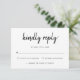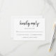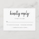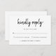 Låt gästerna OSA i stil med den här moderna OSA kort med ett djärvt handskript. Den informella men ändå elegant-utformningen skapar en välkomstton, medan den tydliga layouten med svarsalternativ och ett angivet utrymme för gästantal säkerställer en smidig och smidig OSA processaa. Den här OSA kort är perfekten som kompletterar dina moderna bröllopsinbjudningar.