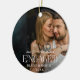 Modern julprydnad med en minimal layout med "Engaged" i fet stil tillsammans med namn och året före ditt favoritfoto. All inslag är vit och kan ändras i verktyg som redigerar designen. Denna enkla, men ändå elegant, prydnad är ett underbart sätt att hedra minnet av din förlovning.