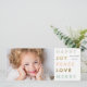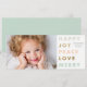 Ett modernt typografiskt julkort med fet, ljus text i en mängd olika alternerande färger och guld folie. Landskapsfoto orientering.