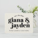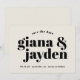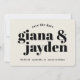 Det här är ett djärvt och typografiskt kort för spara-till-datum-meddelande. Perfekt för det moderna paret! Har en fantastisk typografi och en rundad hörnkortsform som är böjd mot trenden. Typografi och bakgrund är utbytbara mot färg och du kan lägga till ett foto på baksidan av kortet om du vill! Kortet som det visas har en krämbakgrund men kan ändras till vitt för att få ett "tuxedo"-utseende.