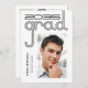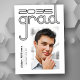 Modern högteknologisk stil 2 Photo studenten-meddelandekort, med inslag av sofistikerad text med texten "Grad" och studenten, tillsammans med ett utrymme för din skola namn, och naturligtvis ditt namn. Ett foto på kortets framsida med ett andra foto på baksidan. På baksidan av kortet finns även textutrymmen för personlig som ger information om studenten och framtida resor. Färger är svartvit och genomskinlig grått färgad-text på vitt eller ändrar lätt bakgrunden på färg som du vill. Perfekt för högstadiet, högskolan och universiteten grad student.