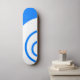 Den moderna geometriska designen har stor, vit kapslad böjd rand mot ljusblå bakgrund. Färg i den här utformningen kan vara personlig.