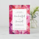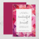 Modern och djärv magenta 'save the date'-kort med en abstrakt stil målning i nyanser av magenta, fuchsia, varmröd och lila. Paret namn i modern kalligrafi skrift och en matchande nyans av magenta som enfärgad bakgrund på baksidan. Teckensnittet kan ändras i designverktyget om du vill! Det perfekta valet för ett galleri bröllop, konstnärligt bröllop, modern bröllopsfirande eller någon annan händelse.