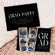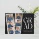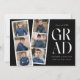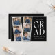 inbjudningskort för studentfest av trendig med en filmremsa med 6 kvadratfoton av student. "Grad" visas i vitt, modernt bokstäver med svart bakgrund (färg i bakgrunden kan ändras). Anpassa framsidan av multifoto-studentfesten inbjudan genom att lägga till student namn, skolan namn och studenten. Inbjudan återgår till visning av studentfesten med vit text med svart bakgrund. Den moderna studentfesten inbjudan är perfekt för studenter i högskolan och högskolan.