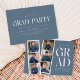 inbjudningskort för studentfest av trendig med en filmremsa med 6 kvadratfoton av student. "Grad" visas i vitt, modernt bokstäver med en skifferblå bakgrund (bakgrunden färg kan ändras). Anpassa framsidan av multifoto-studentfesten inbjudan genom att lägga till student namn, skolan namn och studenten. Inbjudan återgår till visning av studentfesten med vit text med en blå bakgrund. Den moderna studentfesten inbjudan är perfekt för studenter i högskolan och högskolan.