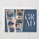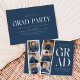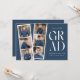 Trendig studentfest inbjudan med en filmremsa med 6 kvadratbilder av student. "Grad" visas med vit, modern text med mörk blått bakgrund (färg kan bytas ut mot bakgrund). Anpassa framsidan av multifoto-studentfesten inbjudan genom att lägga till student namn, skolan namn och studenten. Inbjudan återgår till visning av studentfesten med vit text med mörk blått bakgrund. Den moderna studentfesten inbjudan är perfekt för student i högskolan och högskolan.