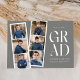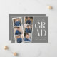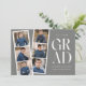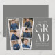 Trendig tillkännagivande för studenten med en filmremsa med 6 kvadratfoton av student. "Grad" visas i vitt, modernt bokstäver med mörk grått-bakgrund (redigerbart färg). Anpassa framsidan av multifotot-meddelandet från studenten genom att lägga till student namn, namn och studenten. Tillkännagivandet går tillbaka till visningens kompletterande text, t.ex. studenten, framtida planer, party-information osv. Snyggt studenten:s tillkännagivande är perfekt för studenter i högskola och högskola.