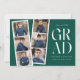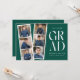 inbjudningskort för studentfest av trendig med en filmremsa med 6 kvadratfoton av student. "Grad" visas i vitt, modernt bokstäver med en evergreen bakgrund (bakgrunden färg kan ändras). Anpassa framsidan av multifoto-studentfesten inbjudan genom att lägga till student namn, skolan namn och studenten. Inbjudan återgår till visning av studentfesten med vit text med gröntens bakgrund. Den moderna studentfesten inbjudan är perfekt för studenter i högskolan och högskolan.