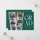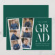 Trendig tillkännagivande för studenten med en filmremsa med 6 kvadratfoton av student. "Grad" visas i vitt, modernt bokstäver med en evergreen bakgrund (redigerbart färg). Anpassa framsidan av multifotot-meddelandet från studenten genom att lägga till student namn, namn och studenten. Tillkännagivandet går tillbaka till visningens kompletterande text, t.ex. studenten, framtida planer, party-information osv. Snyggt studenten:s tillkännagivande är perfekt för studenter i högskola och högskola.