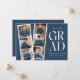 Trendig tillkännagivande för studenten med en filmremsa med 6 kvadratfoton av student. "Grad" visas i vitt, modernt brev med marin blå bakgrund (redigerbart färg). Anpassa framsidan av multifotot-meddelandet från studenten genom att lägga till student namn, namn och studenten. Tillkännagivandet går tillbaka till visningens kompletterande text, t.ex. studenten, framtida planer, party-information osv. Snyggt studenten:s tillkännagivande är perfekt för studenter i högskola och högskola.