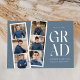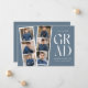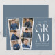 Trendig tillkännagivande för studenten med en filmremsa med 6 kvadratfoton av student. "Grad" visas i vitt, modernt bokstäver med en skifferblå bakgrund (redigerbart färg). Anpassa framsidan av multifotot-meddelandet från studenten genom att lägga till student namn, namn och studenten. Tillkännagivandet går tillbaka till visningens kompletterande text, t.ex. studenten, framtida planer, party-information osv. Snyggt studenten:s tillkännagivande är perfekt för studenter i högskola och högskola.