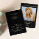 Denna inbjudan till elegant firande i livet är en hjärtlig hyllning till en omhuldad älskad man. Den främre konstruktionen har en elegant svart bakgrund med förfinad guld och vit typografi som skapar ett sofistikerat och tidlöst estetiskt material. Den balanserade layouten ger alla nödvändiga detaljer för minnestjänsten på ett värdigt och respektfullt sätt. På baksidan av kortet presenter finns ett vackert framlagt fullt-sidesfoto med "in loving memory" som är inskriven ovan och din älskades namn och data under livet, vilket ger en personlig och meningsfull hågkomst. Denna inbjudan är, som är designad med nåd och värme, ett rörande sätt att föra samman familj och vänner för att fira ett liv som lever väl. Finns som tryckta kort eller en snabb digital nedladdning.